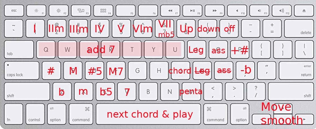The LUA script "texttochord.lua" precalculates these scales. Each pitch ( except the bass ) is decorated with the next pitches of the chord. In addition, the list of alterations ( the "black keys" ) are calculated. These scales are triggered i the menu "setting/MIDI-settings"